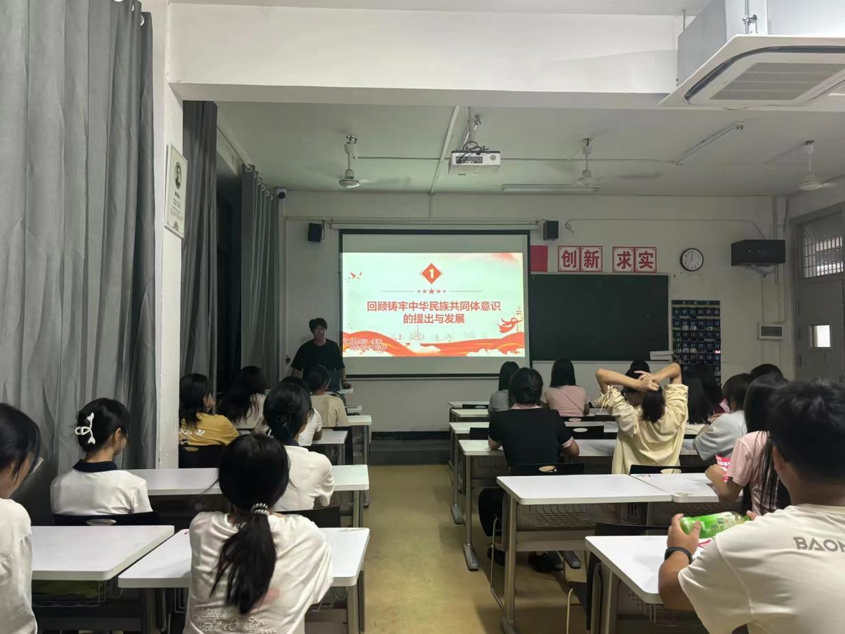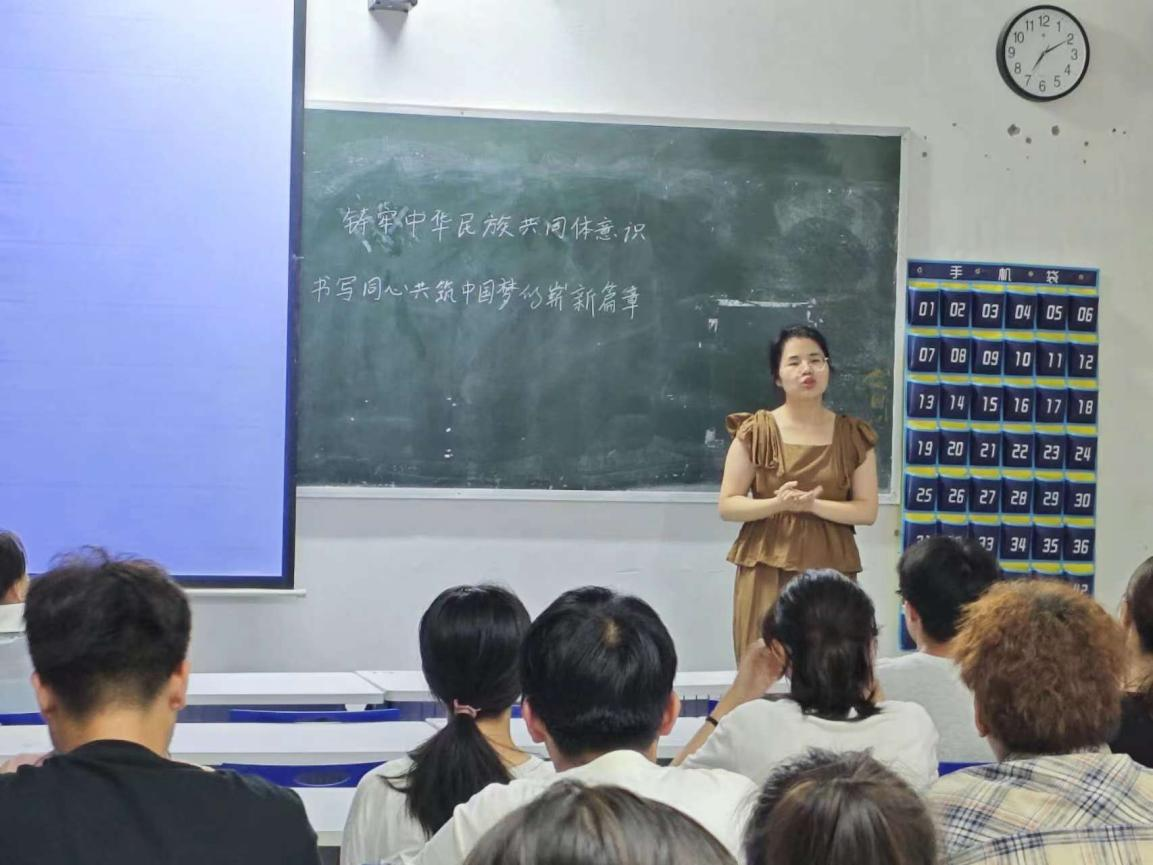 然后,班主任分别从回顾铸牢中华民族共同体意识的提出与发展、充分认清铸牢中华民族共同体意识的重大意义、准确领会铸牢中华民族共同体意识的丰富内涵、牢牢把握铸牢中华民族共同体意识的实践途径四个方面阐明了中华民族正在迈向中国式现代化的新征程。我们要切实增强铸牢中华民族共同体意识的思想自觉、政治自觉、行动自觉,共同团结奋斗、共同繁荣发展。