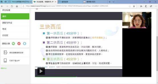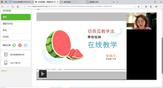 3.教研室开展教研活动,活动的主题为:如何巧妙运用教学法,玩转线上教学。主要学习的内容是武汉理工大学的张晓文老师的“切西瓜”教学法带你玩转线上教学法。