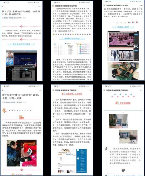 1.服装设计教研室根据第一周开展线上教学存在的问题及树立典型、更好的发挥模范教师的带头作用,积极协助公司进行教师推文素材的收集工作。