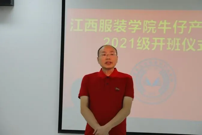 牛仔产业公司经理易长海教授,围绕牛仔产业公司的建设背景、牛仔产业公司人才培养模式和未来牛仔产业公司毕业生的就业前景作了精彩的阐述。他指出,服装行业对牛仔产业人才的大量需求,以及国内外牛仔产业的发展形势,员工们不仅需要将理论与实践相结合,而且要将知识融入产业中结出实果。