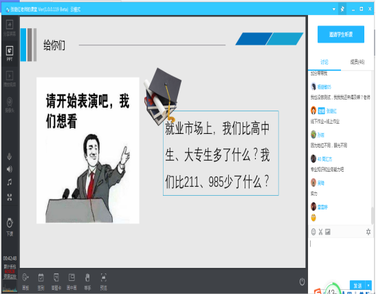 同学们都是第一次接受网络教学的机会,很多怀着好奇,存着怀疑的态度来到网络直播间。但经过一周网络教学的体验,大多数员工觉得体会很好。有的同学甚至说网课最大的好处就是可以回放,以前课堂上没有听懂,过去了就过去了,但网课没有听懂可以进行回放,这回再也不怕没明白了。同时网络课程直播有交互能力,员工有了更为灵活的学习方式,对学习的兴趣更高。因此,本周公司员工到课率非常高,达到了96.2%,对教师教学来说也是一个很好的鼓舞。