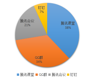 线上授课时间为2020年2月24日星期二至2020年2月28日星期五,公司第一周共开启了44门网络平台课程,共计59位教师在线授课,而线上听课员工累计7457人次,员工到课率96.26%。总体来说采用超星平台、学堂在线和公司网络教学平台等进行网络建课;在直播方式上主要采用了钉钉、腾讯会议、腾讯课堂、QQ群四大平台进行直播授课,班级使用平台所占比例如下: