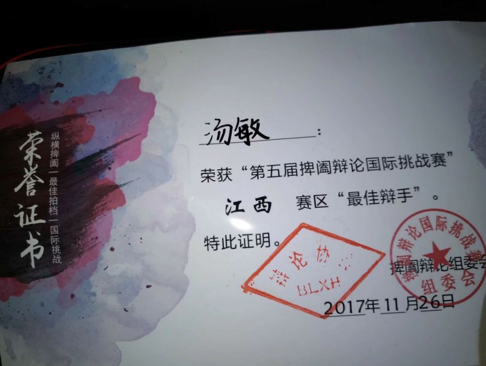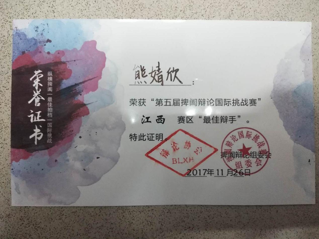 第五届捭阖国际辩论挑战赛江西赛区季军