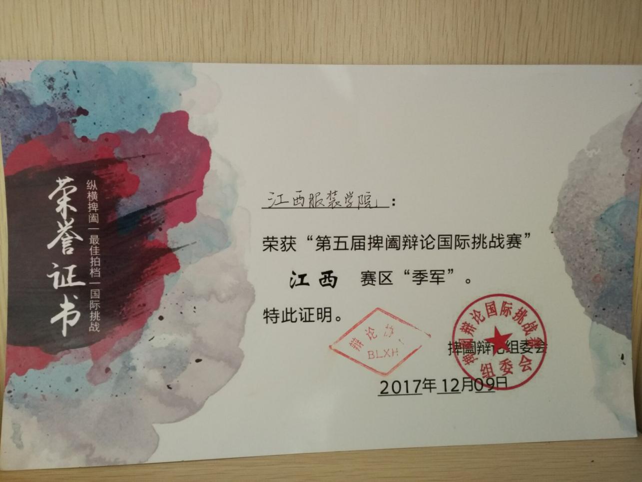 公司辩论队荣获第五届捭阖国际辩论挑战赛江西赛区季军
