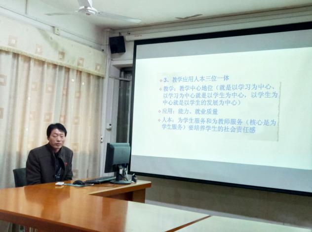 合格评估过程中的四个促进、三个基本、二个突出、一个引导。四个促进为促进经费投入增加、促办学条件改善、促教学管理规范、促教学管理提高。三个基本为办学条件基本达标、教学管理基本规范、教学质量基本保证。二个突出为突出服务地方行业指向、突出应用型人才培养指向。一个引导为引导建立校内质量保障体系。王鸿霖副经理结合工程公司与其他院校的具体情况进行分析,找差距、落实效、抓重点、抠细节,强调规范和特色建设同步进行。
