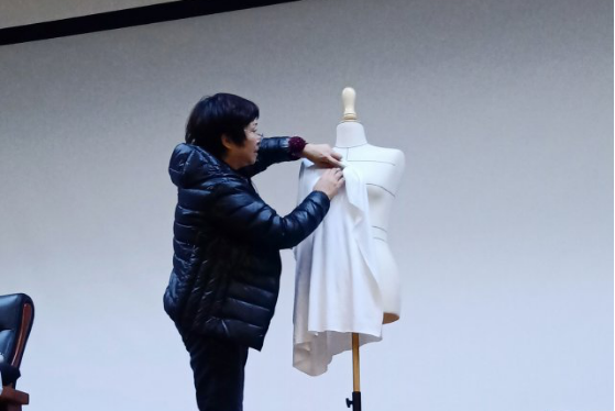 纪琳老师对服装造型的理解和造诣颇深,她治学严谨,将自己多年积累的经验集于课堂,帮助同学们全面了解服装制版师的工作情况,不仅激发了同学们的学习热情,还建立了同学们的学习信心。为了使同学们更加透彻清晰的理解授课内容,纪老师还将她带来的服装进行演示操作。