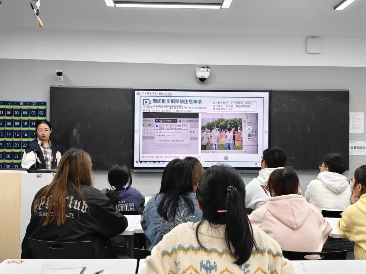 会议第三项,由王舒进行总结讲话。王舒一一列举了照片拍摄和新闻稿撰写中存在的问题,并要求新媒体工作人员注意细节,用心拍摄,用心撰稿,将认真负责的态度一以贯之,同时要注重新闻宣传,让更多的师生了解和关注公司动态。