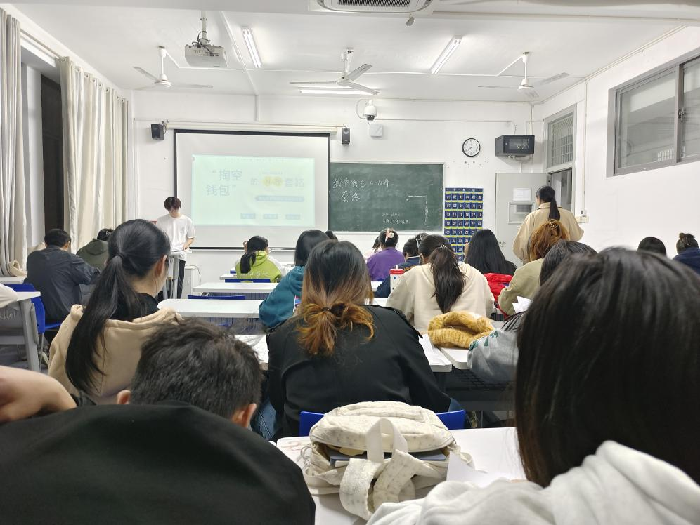 会议伊始,由班长讲述班会内容。班长告诉同学们如何提升的财务规划与消费管理能力、防范各类消费陷阱、保护个人财产安全。引导大家理性消费,树立正确的消费观。旨在让同学们认识到各种消费套路的危害,还能激发大家学习财务管理知识的兴趣,共同营造一个更加理性、健康的消费环境。