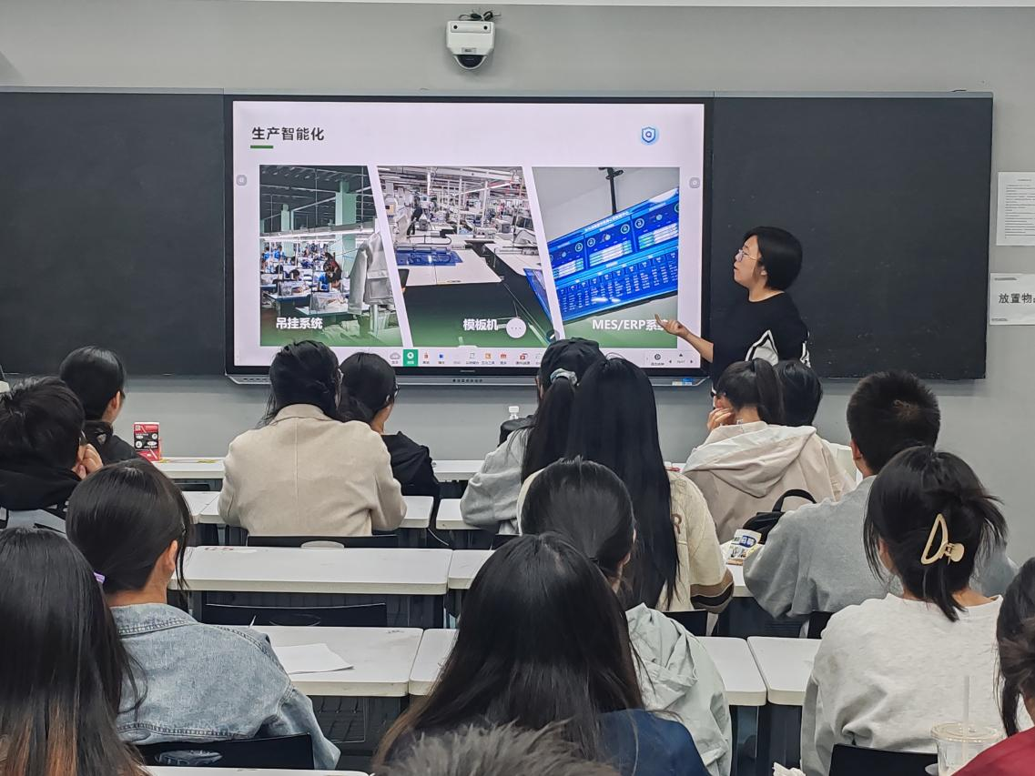 宣讲会现场,浙江新大三源控股集团的企业代表登台为同学们介绍招聘信息。他们以生动的演示文稿、详实的数据,深入剖析了当前行业发展的趋势,对公司的企业文化、组织架构、岗位设置以及职业发展路径进行了全面介绍。在岗位需求介绍环节,强调了专业技能与综合素质的重要性并表示他们所需要的人才不仅要有扎实的专业知识,更要具备团队协作能力、沟通能力和创新思维。为了让同学们更好地理解,还列举了一些实际工作场景中的案例,使讲解更加通俗易懂。