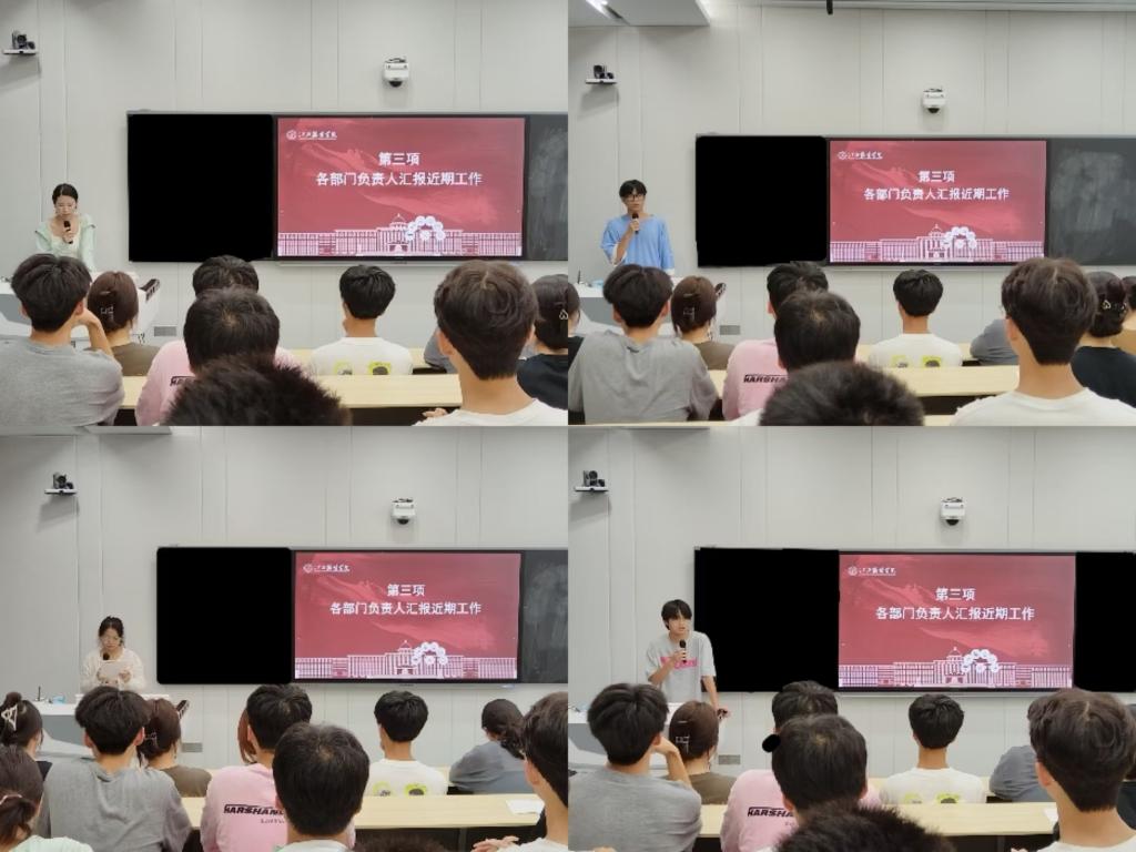 会议第二项,由班委联合会各部门负责人汇报近期工作。各位负责人针对日常教室管理、主题班会督查、早晚自习检查等工作开展情况进行了汇报,大家一致表示,在接下来的工作中将不断提升工作质量,确保各部门之间相互协助,致力提升班级整体素质。