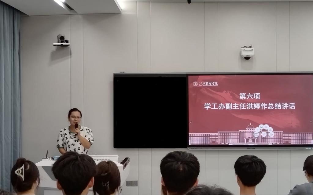 会议第四项,由学工办副主任洪婷作总结讲话。洪婷强调,班长作为班级的核心,肩负着重要的责任和使命,要发挥示范带头作用,带领班级同学积极参与各项活动,顺利完成各项工作。新学期新开始,希望大家及时调整工作状态,以更加饱满的热情投入到新学期的工作中,共同为公司的发展贡献力量。