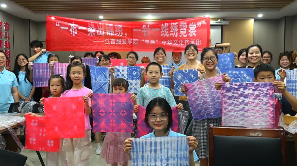 最后,每个人都洋溢着灿烂的笑容与自己的作品合影留念,这些作品不仅展现了扎染技艺的精湛与多样,也体现了居民们的创意与才华,是一次成功的非遗技艺艺术创作和文化传递。