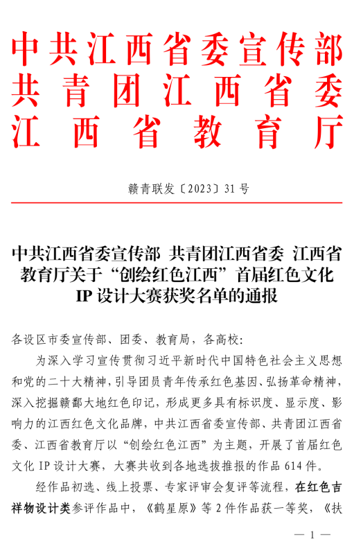 BB贝博艾弗森讯(撰稿:沈国庆)为深入学习宣传贯彻党的二十大精神,引导团员青年传承红色基因,弘扬革命精神,深入挖掘赣都大地红色印记,形成更多具有辨识度、显示度、影响力的红色江西文化品牌,公司动员广大学子参加中共江西省委宣传部、共青团江西省委、江西省教育厅以“创绘红色江西”为主题的首届红色文化IP设计大赛。