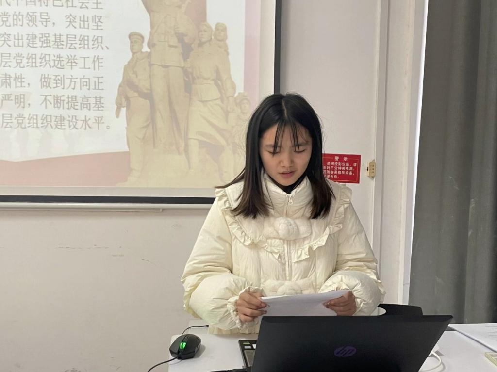 活动第二项,由汪静怡领学《中国共产党基层组织选举工作条例》。各位党员纷纷表示,要坚决贯彻落实习近平新时代中国特色社会主义思想,进一步增强“四个意识”,坚定“四个自信”,做到“两个维护”,要发扬优良作风,锤炼过硬作风,在新时代新征程上勇于担当,干事创业,努力创造出无愧于历史和人民的新功绩。