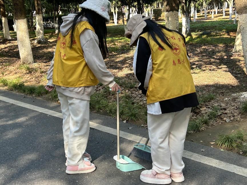 活动中,志愿者们身穿黄马甲,手拿各自携带的打扫工具,在分配好任务后,便开始了井然有序的清扫工作。他们沿着校园内的道路、绿化区域,清理干净路边的落叶和杂草。经过志愿者们的辛勤劳动,包干区内的卫生环境变得焕然一新,大家心里充满了成就感,从实践中真正体会到了“劳动最光荣”这句话的深刻含义。