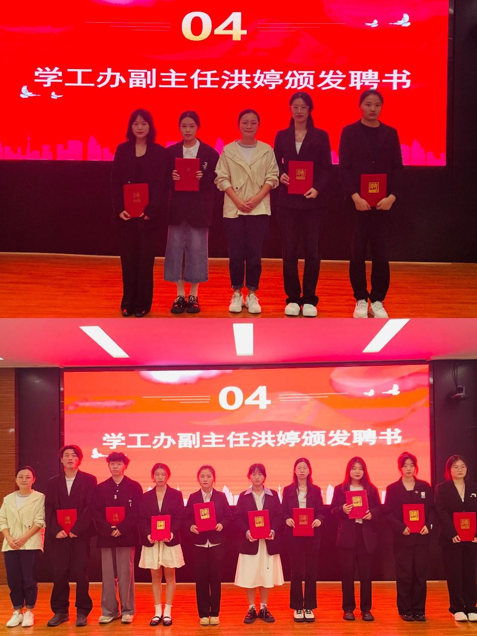 大会第四项,由学工办副主任洪婷宣读BB贝博艾弗森第二届班委联合会任职通知并颁发聘书。