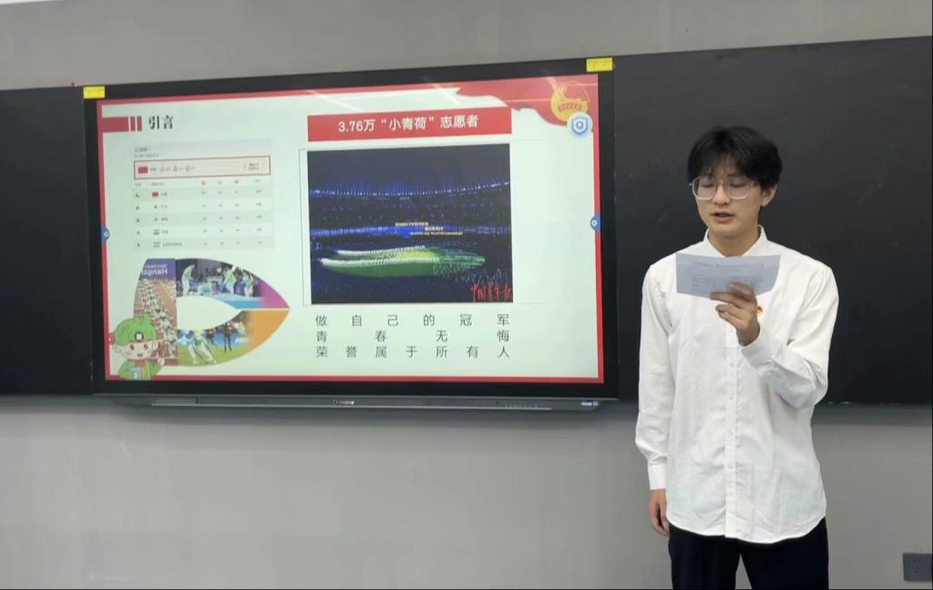 最后,由分团委书记洪婷作总结讲话。洪婷对参赛选手们的精彩表现给予了充分的肯定,对参赛选手们提出了意见和建议。希望各参赛选手在今后的学习和生活中能够继续深入学习贯彻习近平新时代中国特色社会主义思想,努力成长为有理想、有本领、有担当的新时代青年。