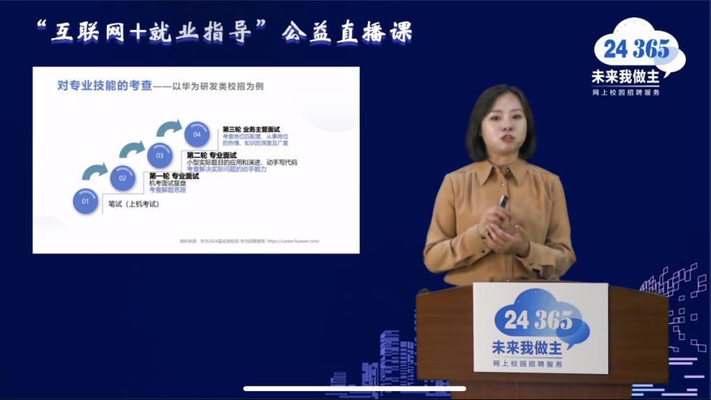 本次直播课邀请了西南大学人才招聘处生涯咨询师田振敏进行授课,她以PPT讲解加互动问答的形式就“读懂招聘需求,强化面试准备”展开深入讲解。直播课上,田振敏分别从认识个体面试、读懂招聘需求的面试准备、面试中的自我介绍三个方面展开详细的讲解。她首先对如何读懂招聘需求进行了深入分析和详细讲解,然后在充分理解岗位胜任力指标的基础上,讲解如何有效强化个体面试的相关准备。接着,田振敏就当下形势结合老员工实际情况对面试进行了具体分析,包括面试问题、面试流程、面试岗位等,并以华为公司为例,强调了各个岗位的基本要求包括知识、技能、角色定位、自我认识、特质和动机等。最后,田振敏讲到了面试中的自我介绍,作为应聘者要明确自己的目标岗位及相关要求,找到匹配自己能力的岗位。同时充分表现出自己的态度,呈现出自己最好的一面。在面试时保持好的心态是很重要的,如果没有相关面试经验,就需要多加练习,增强自己的信心。