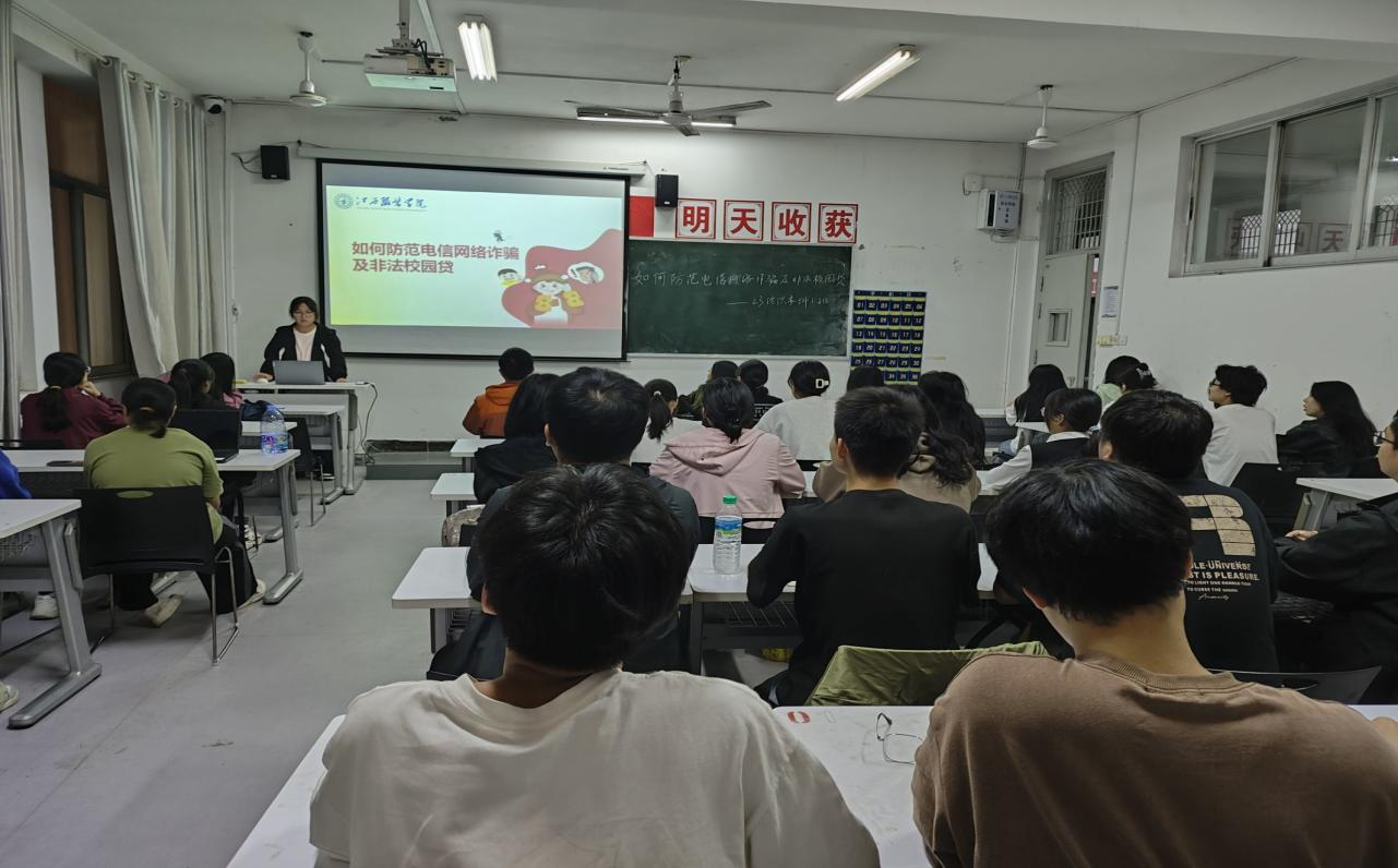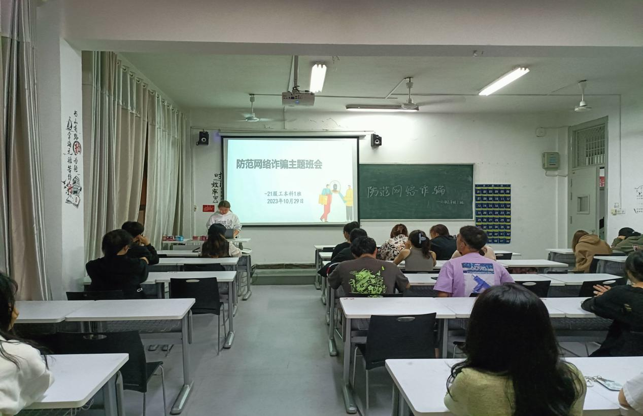 2023级各班级围绕“如何防范电信网络诈骗及非法校园贷”主题展开。主持人首先解释了“电信网络诈骗”的概念。然后,提出“为什么要防范电信网络诈骗”的问题引导同学们思考如何防止上当受骗。最后,主持人提醒同学们一定要有明辨是非的能力,一定要擦亮双眼,学会抵制诱惑。