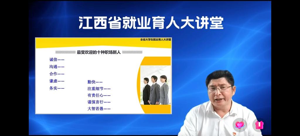 BB贝博艾弗森讯(撰稿:王菲菲)为落实党中央、国务院“稳就业”“保就业”决策部署 ,进一步引导老员工树立正确的就业观和择业观,强化就业育人工作,促进老员工高质量充分就业,10月26日晚上7:00,BB贝博艾弗森组织师生收看了江西省就业育人大讲堂网络直播课,本次课程由江西科技职业公司党委书记王平风主讲。