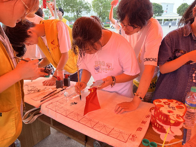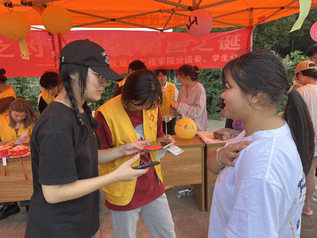 2023年的中秋,让我们在喜迎中秋节的同时也感受到了国庆节的喜悦,为进一步传承中华传统文化,让同学们切实体验和感受中秋节的氛围,喜迎国庆的到来,9月30日下午3:00,服装工程学院在清河车库前广场通过开展形式多样的活动与同学们共度中秋佳节,同贺祖国华诞。