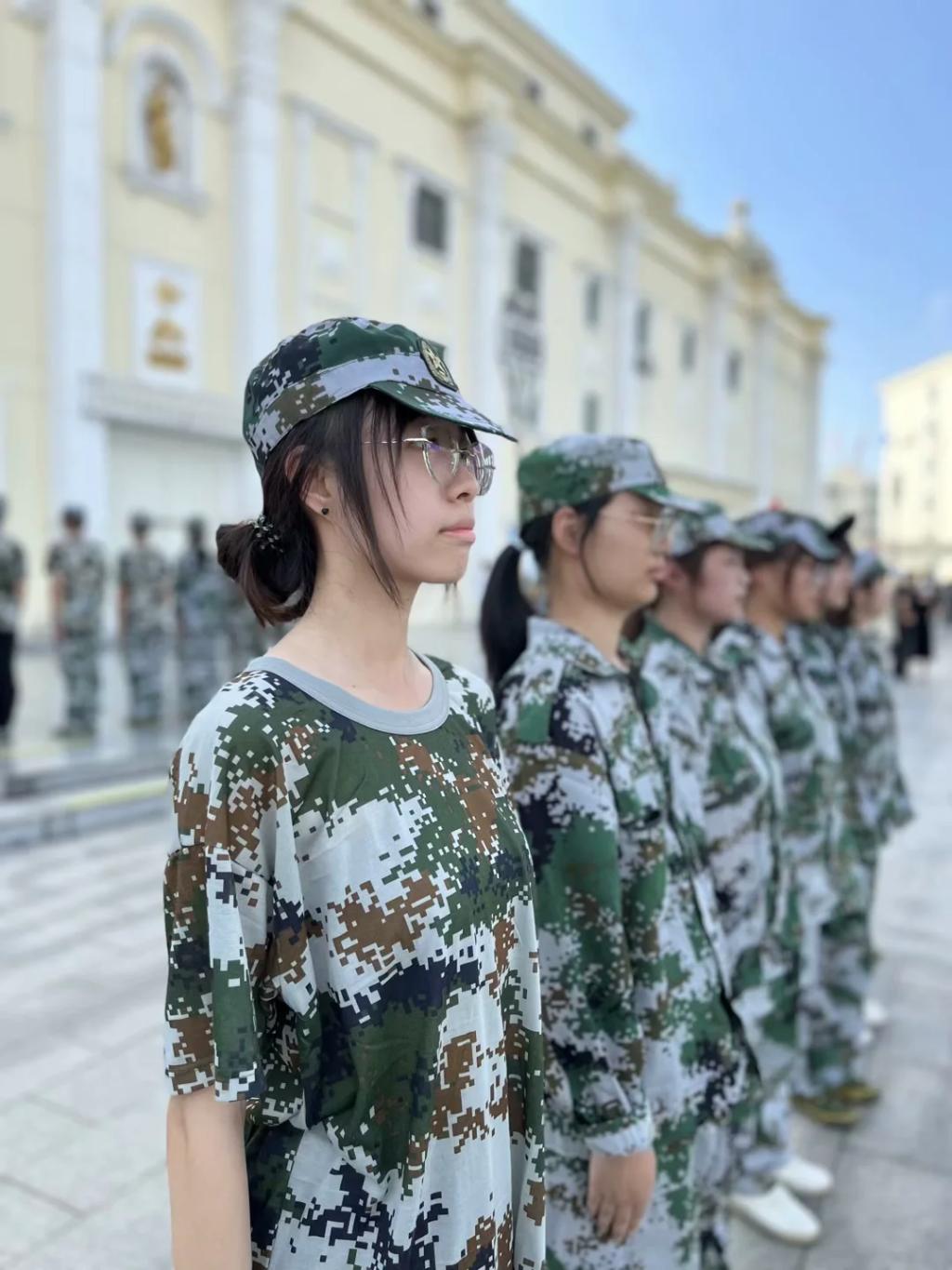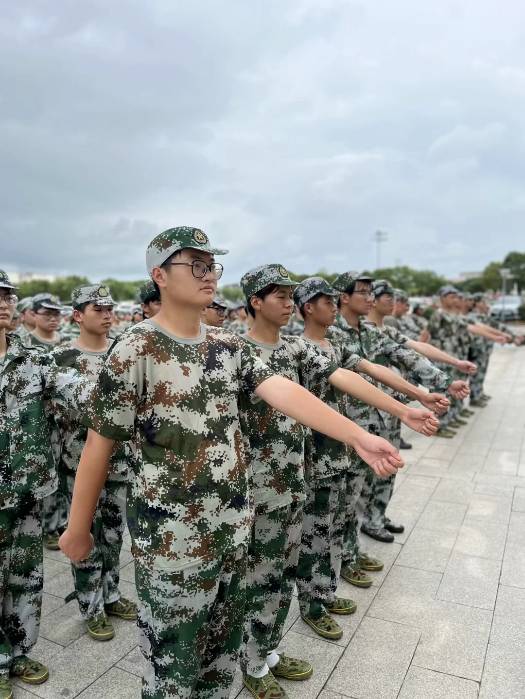 前方似有山水迢迢,但不敌我青春年少,同学们凭借顽强的意志力在教官、老师的鼓励下已经逐渐进入军训状态,习惯军训生活。