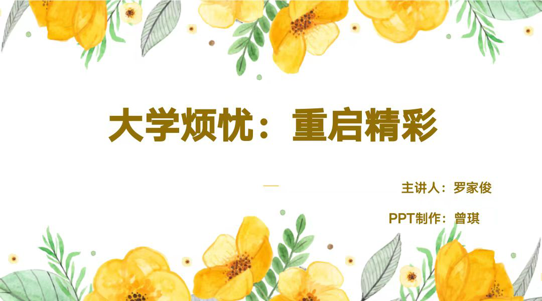 罗家俊从大学新生活、困境的诱因、压力与挑战三方面作为切入点展开,介绍了同学们想象中的大学与现实中的大学存在的差异。随后他以这三方面为基础,和同学们分享了十个应对技巧,使各班级心理委员明确了接下来的工作。