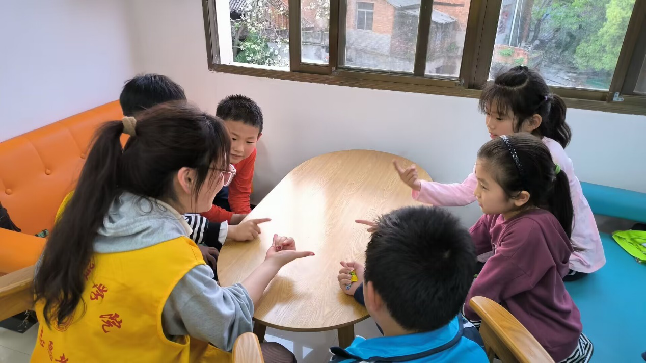 到达社区后,志愿者组织小朋友们一起玩游戏,通过几轮游戏的相处,现场氛围逐渐活跃,志愿者们与小朋友们融为一体,成为小朋友们的好队友。每次游戏输掉的队伍将会受到“惩罚”,队伍需要选择一名小朋友表演节目。