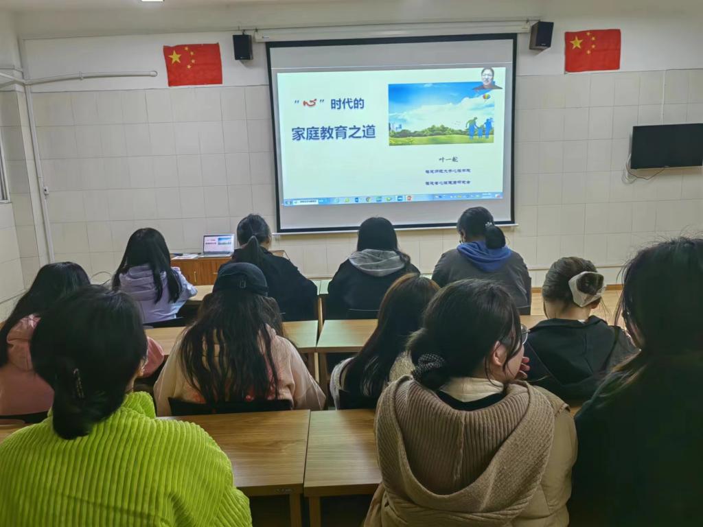 随后,叶一舵教授从中国家庭教育的现状、心(新)时代家庭教育面临的变化和挑战、与心(新)时代相适应的家庭教育之道三方面进行了详细讲解。通过举实证、案例分析等方式,向大家强调了要尊重差异,保护自尊,适性教育,一定要牢记对孩子的期望值并不是为了实现自己的理想,加深了大家对新时代的家庭教育之道的理解。
