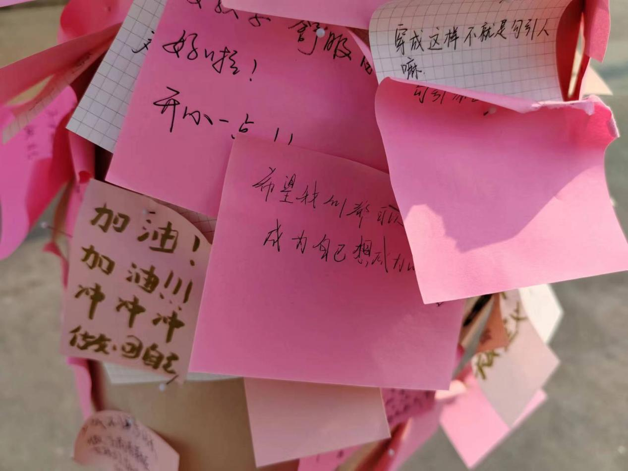 人偶架屹立在春风中,承载着同学们最美好的愿望。