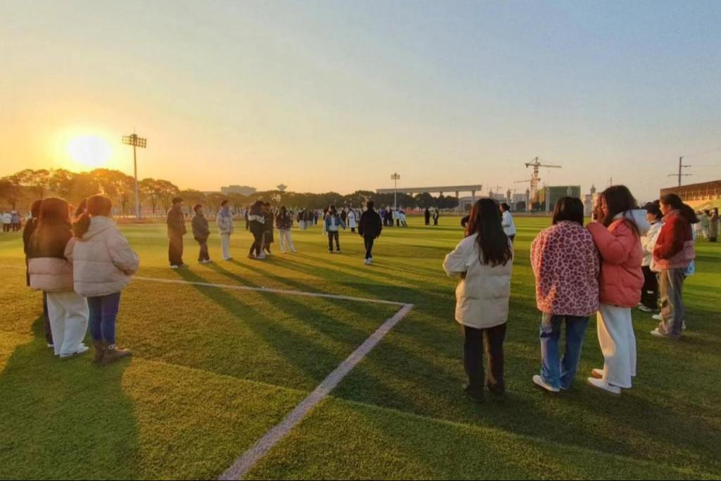培训班学员以班级为单位在校体育场集合,早训就此拉开帷幕,通过各项活动增强身体素质,以最好的精神面貌迎接新学期的学习生活。