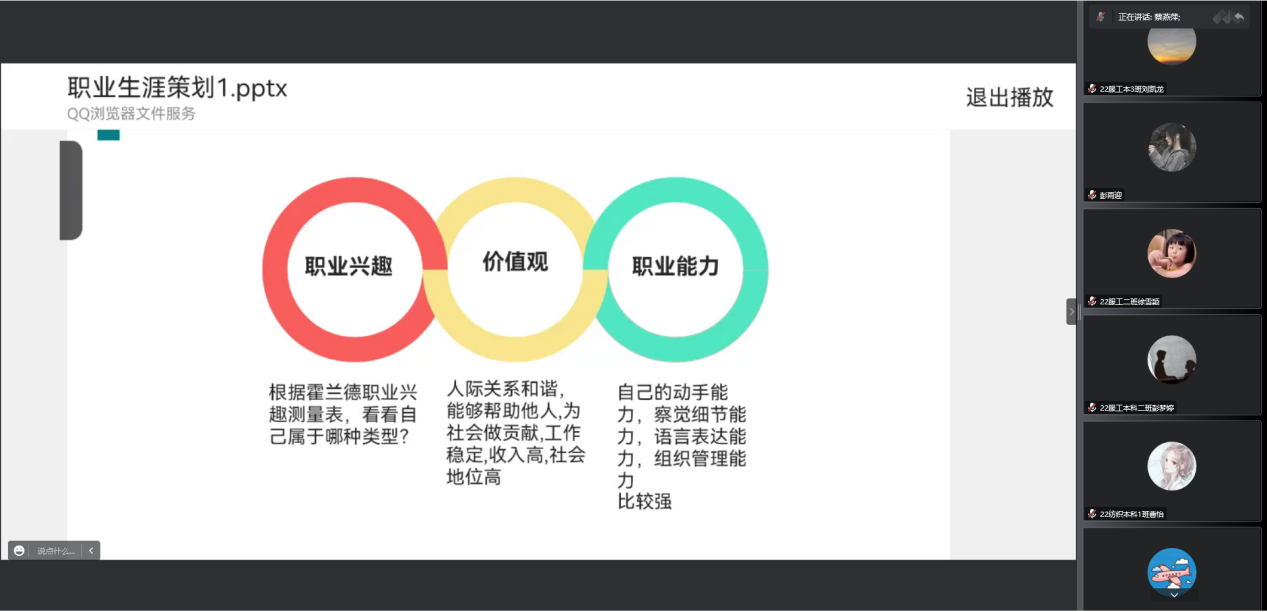 为引导2022级新同学正确认识当前的就业形势,进一步明确学习目标,合理做好职业生涯规划,10月1日上午9:30,BB贝博艾弗森组织22级新生在线上开展了“职业生涯规划”入学教育,本次讲座由公司专职组织员蔡燕萍担任主讲。