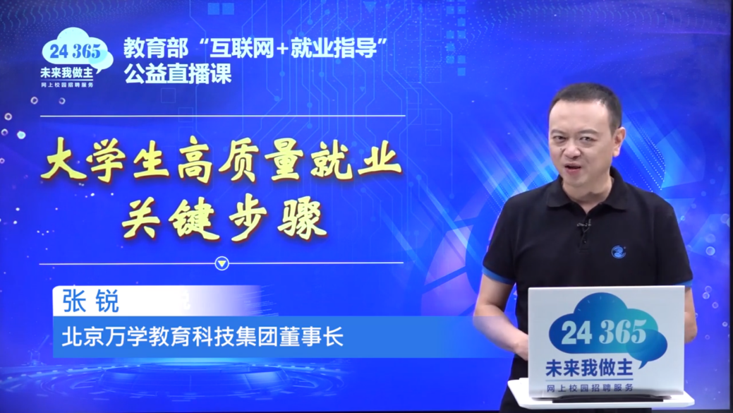 本次公益直播课邀请了北京万学教育科技集团董事长——张锐。张锐首先分析了人生与大学的深层涵义并解析两者关系;其次结合当下高校毕业生就业情况,理清了当下就业局势;最后阐述了就业价值链的重要性,并将就业价值链拓展成十一项核心价值活动详细讲解。