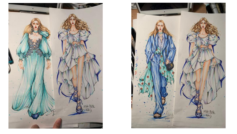 李龙在4月份开始练习手绘,并联系老师请老师进行指导学习。他进一步学会理解手绘的着衣原理,在人脸上加深学习,他渐渐学会在练习过程中发现自己独特的风格。在前中期时他只练习效果图,9月份开始练习款式图和设计说明,后期一周画两三张,同时背诵其他科目,他通过不断练习效果图以保持手感一直到考前。在10月份他联系老师和学长帮助定稿,并且开始一周一次的模拟考试,每次三小时限时画,用真题或自己定题目,他坚信练习的越多,考试的时候就会画的越顺手。复试期间,他准备好一些日常的问题进行熟记,同时准备好中英文自我介绍。
