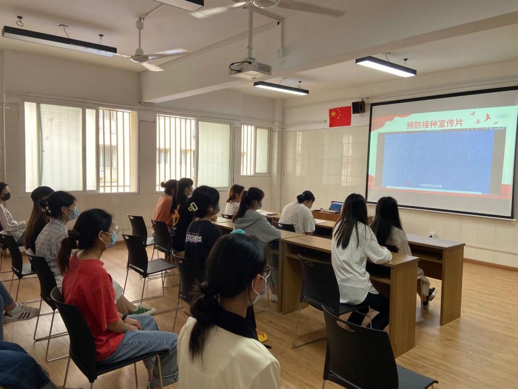 活动伊始,主持人首先介绍了“全国儿童预防接种日”的由来,并通过一部预防接种宣传片带领同学们深入了解预防接种的重要性。接着,主持人从“为什么要接种疫苗、疫苗的分类、接种疫苗注意事项、疫苗不良反应及处理方法”四个方面展开叙述。由对我国及全球当前疫情防控形势的分析,指出预防接种是维护公共卫生安全、阻断疫情传播的重要手段,对保障人民群众生命健康具有十分重要的意义,阐明了接种疫苗的原因。随后详细介绍了非免疫规划疫苗和免疫规划疫苗的区别,及接种疫苗前后需要注意的生活事项。分别针对接种疫苗后出现的“一般不良反应、少见或者严重反应”两种症状做了分析,并提出了处理方法。