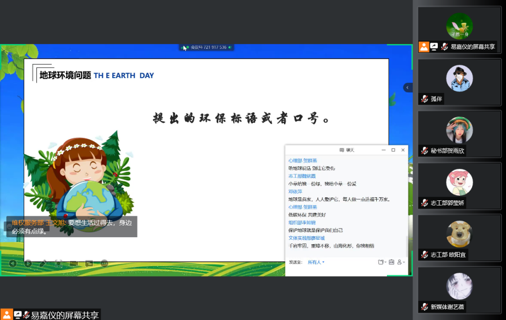 BB贝博艾弗森讯(撰稿人:付菁)2022年4月22日,是第53个世界地球日。为了提高同学们的环保意识,引导同学们参与到环保活动中,倡导绿色低碳生活,改善地球的整体环境,4月22日晚7:00时,BB贝博艾弗森组织了“珍爱地球,人与自然和谐共生”线上主题会议。