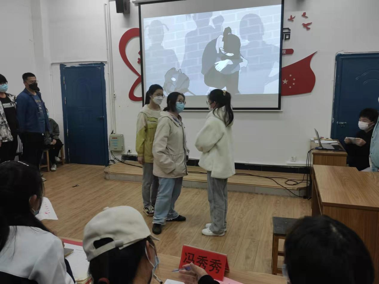 第八组是21服工本3的同学带来了《反校园欺凌》的表演,校园欺凌在校园中时有发生,同学们通过表演告诉大家在校园欺凌中如何更好的法律手段保护自己。