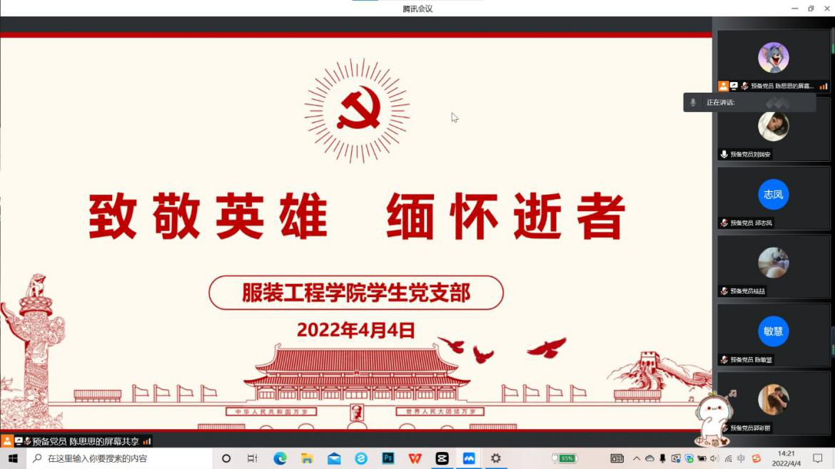 公司各员工公寓党建小组通过腾讯会议开展了“致敬英雄,缅怀逝者”网上祭扫主题党日活动。同学们观看了中华英烈网中的相关直播视频,全体成员登录中华英烈网参与“网上祭英烈”活动,大家向先烈默哀,表达对先烈的感恩和敬仰。壮志已酬,英雄笑慰,为他们奉上一束小白花,亦是将感恩的心,思念的情永恒传递。在清明缅怀先烈,激荡英雄气,砥砺家国情。
