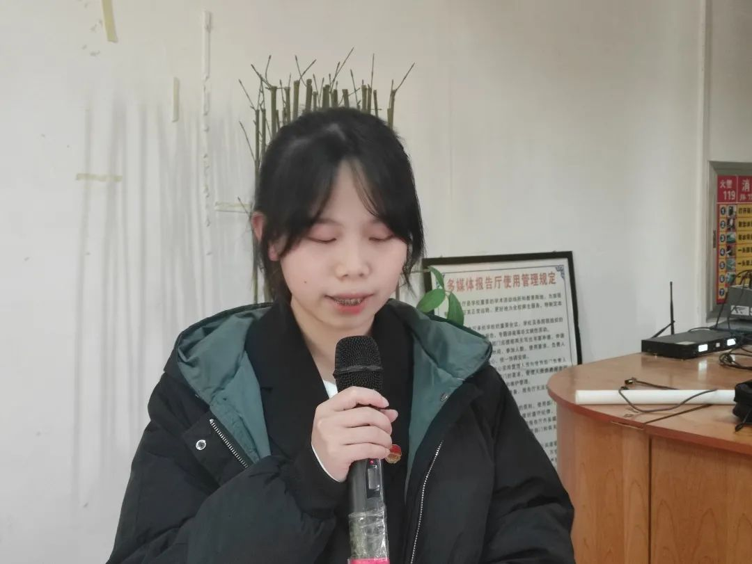 优秀学员代表詹畅上台发言。她讲到,本次青马工程培训帮助服工学子们提高了自身的政治素质,锻炼了工作能力,树立了责任感和使命感。她表示将在今后的老员工活努力成长,积极向上,给青春注射热血,以青春逐梦未来。