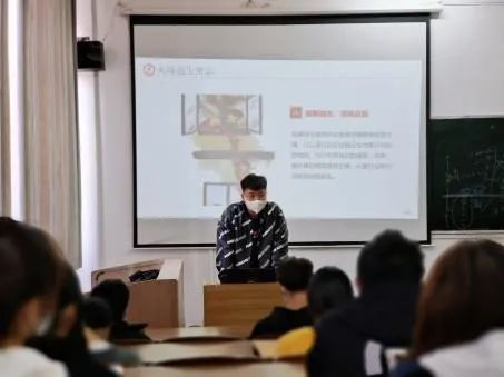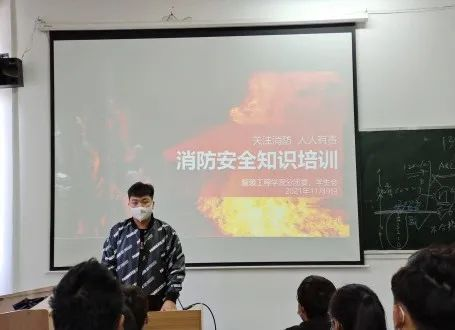 陈茂鑫从火灾带来的危害引入主题,围绕警示、防火、灭火、逃生四个方面,系统全面的讲述了消防安全知识。他详细介绍了火场致人伤亡因素,不同场所消防设施、逃生路线提示,报火警注意事项,消防设施器材的使用方法以及不同物质燃烧原理的防治措施。同时结合实事案例,深入浅出地分析了引发消防事故的原因,以此警示同学们多留意身边的消防隐患,并引入防火、灭火、逃生小常识,讲述应对日常突发性消防事故的方法。