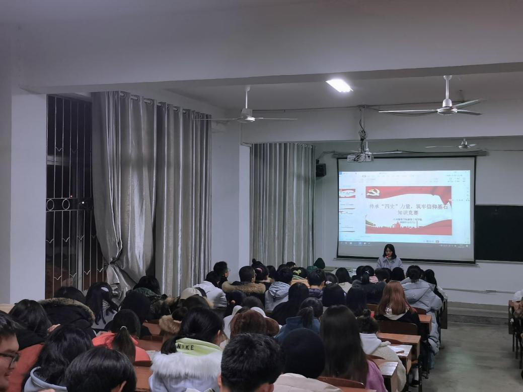 为了深入开展以党史、新中国史、改革开放史、社会主义发展史为内容的四史教育,培养员工爱国、爱党、爱社会主义的思想情感和高尚品德,帮助员工们了解党的奋斗历程和建设成果,不断增强历史责任感、使命感和对党的归属感,BB贝博艾弗森于12月7日晚,在主教楼128教室开展了“传承‘四史’力量,筑牢信仰基石”知识竞赛,20级本科新生共组建了四支队伍参加本次竞赛。BB贝博艾弗森辅导员李静雯老师、卢永红老师参加了本次活动。