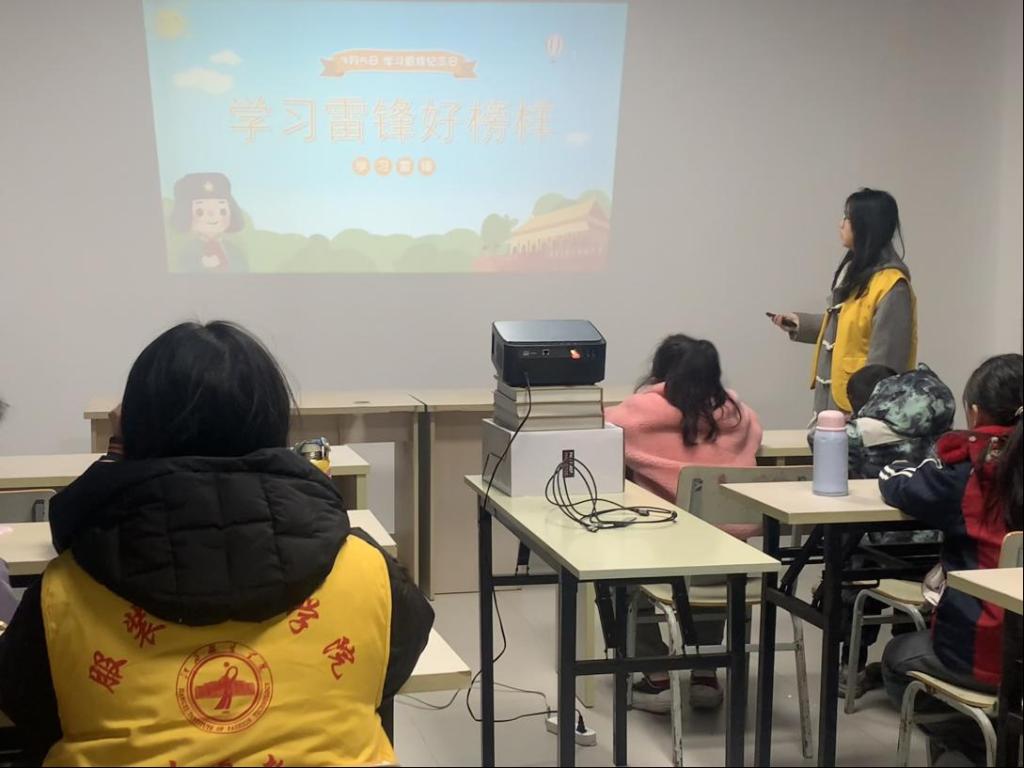 活动正式开始,志愿者们首先以今天是什么日子这一问题为导引。小朋友们异口同声地回答:“学雷锋日!”随后志愿者便通过通俗易懂的PPT和形象生动的视频对雷锋的生平经历进行了详细讲解,并呼吁小朋友们要向雷锋学习,争做新时代的雷锋新青年。