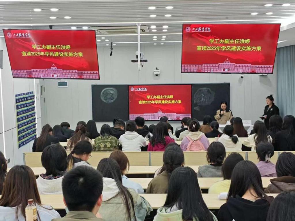 大会第一项,由学工办副主任洪婷宣读2025年学风建设实施方案。洪婷强调,学风是一所公司的灵魂和气质,是衡量公司办学水平和人才培养质量的重要指标,优良的学风可以激发员工们的学习热情和创造力,更是塑造同学们高尚品德和健全人格的保障。洪婷呼吁全体师生,希望老师以高度的责任感和使命感,全身心投入到工作中,用自己的言传身教感染和引导员工,为培养德智体美劳全面发展的社会主义建设者和接班人贡献自己的力量。希望同学们珍惜大学时光,勤奋学习,勇于探索,以实际行动为营造优良学风贡献自己的一份力量。