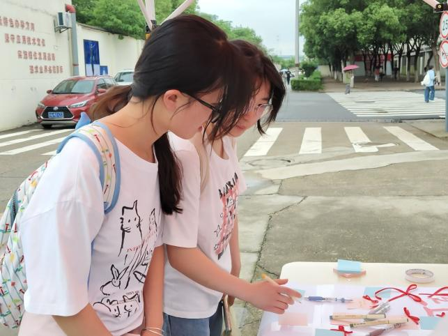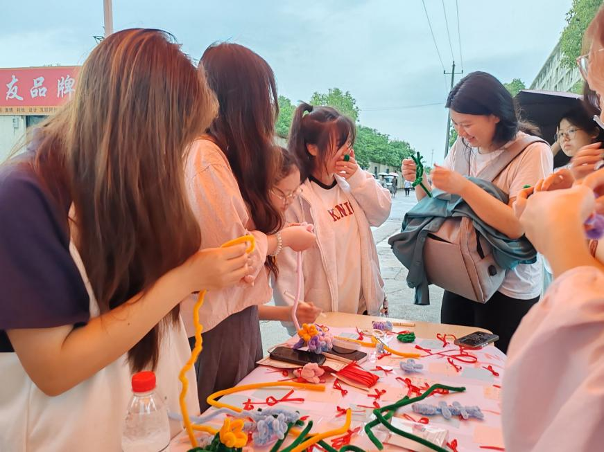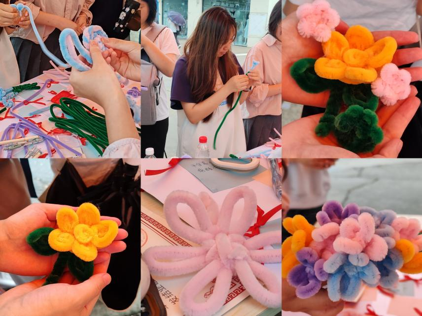 随后,同学们充分发挥创意,动手摆弄着手中的材料。在扭扭棒手工制作过程中,大家将五彩的扭扭棒巧妙地弯曲、缠绕,制作出形态各异的花朵,再搭配上丝带,组合成一束束精致的花束。与此同时,写祝福语环节也开展得如火如荼。有的同学在小巧的爱心卡片上,用隽秀的字迹写下温暖的话语;有的同学则发挥绘画特长,在卡片上绘上可爱的图案,再添上真挚的祝福。