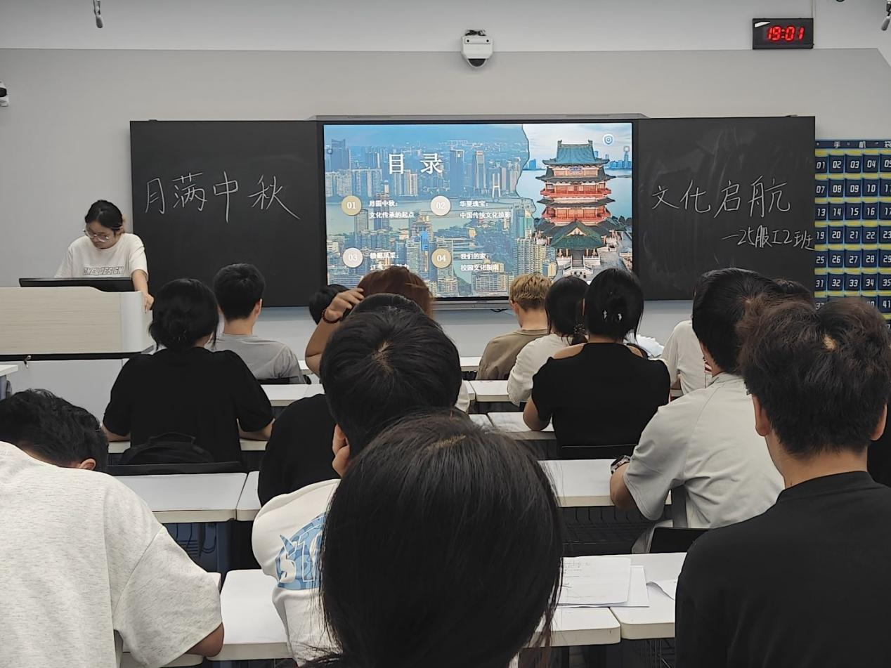 25级各班级以“月满中秋,文化启航”为主题召开班会。班长先请班级同学分享家乡中秋习俗,再讲解中秋起源与福建博饼、广东提灯等各地民俗,拓展介绍了春节、端午等传统节日内涵。随后聚焦华夏传统文化,从景德镇青花瓷、京剧等传统技艺与艺术,到汉服热潮、故宫文创的现代创新,展现文化传承与新生;通过视频展示了江西山水,介绍了井冈山红色历史、滕王阁等文化地标及南昌民俗以及公司服装设计专业对江西文化元素的创新运用。最后介绍了校园校训、“虚拟时装秀”等特色文化,鼓励员工探索校园文化魅力。