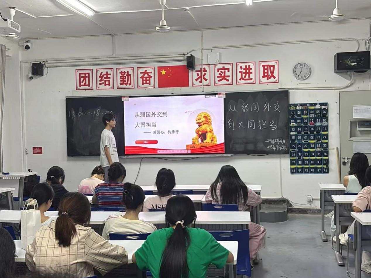 24级各班级围绕“从弱国外交到大国担当——爱国心,传承行”展开班会。各班班长以2024年巴黎奥运会中国代表团“中国红”巡游场景,对比电影《我的1991》中1919年巴黎和会画面,引发员工对国家外交变迁的思考,深悟了“弱国无外交”。随后列举了2021年中美高层战略对话、2024年巴勒斯坦派别在北京和解等事件,展现了当代中国外交担当。小组讨论环节,同学们结合奥运健儿拼搏、北斗卫星研发等案例,纷纷表示,外交底气源于国家实力与爱国精神。