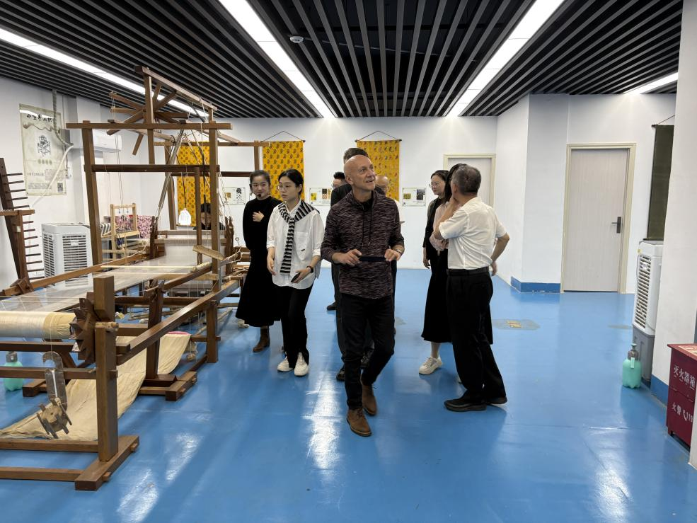 在研究院内,维克多教授表现出浓厚的兴趣。他驻足于一系列珍贵的古代丝绸织物标本、精美的织绣作品以及基于考古发现成功复原的历代服饰面前,不时与陪同专家进行深入交流。研究院工作人员向维克多教授详细介绍了赣鄱地区悠久的丝绸文化历史、代表性的织造技艺(夏布织造、刺绣等)以及研究院在古丝绸技艺保护、复原与创新应用方面所取得的系列科研成果。