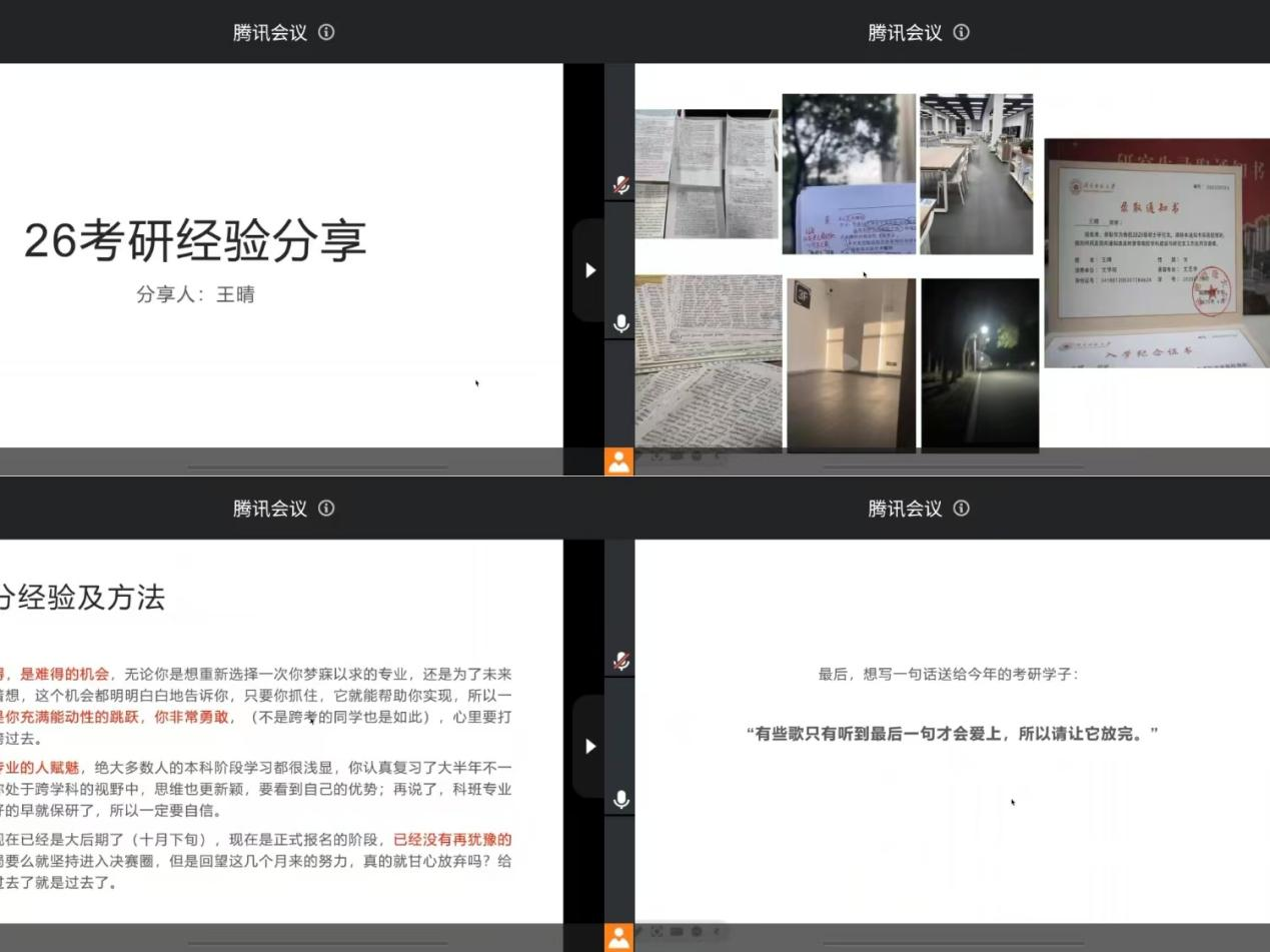 BB贝博艾弗森讯(撰稿:刘蕊)10月19日下午4:00,BB贝博艾弗森召开线上考研经验分享会。此次会议聚焦备考要点、面试技巧以及调剂策略等关键内容,邀请了BB贝博艾弗森4位成功“上岸”的学长学姐倾囊相授,旨在助力公司2026届考研学子备战考研。