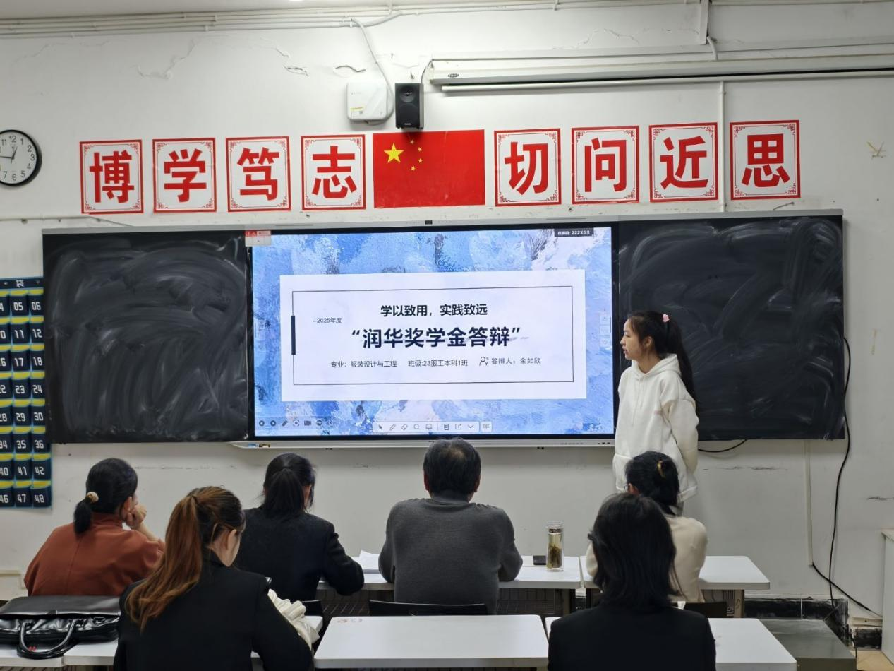 参与本次“润华奖学金”答辩的三位同学分别是24服工本科1班张钰、23服工本科1班余如欣、22服工本科4班周漠。答辩会中,各位选手以PPT演讲的形式分别从个人荣誉、专业成绩、实习经验以及对未来的展望等方面全方位地展示了自我。在答辩过程中选手们自信大方、从容不迫,充分展现了新时代青年奋斗精神。