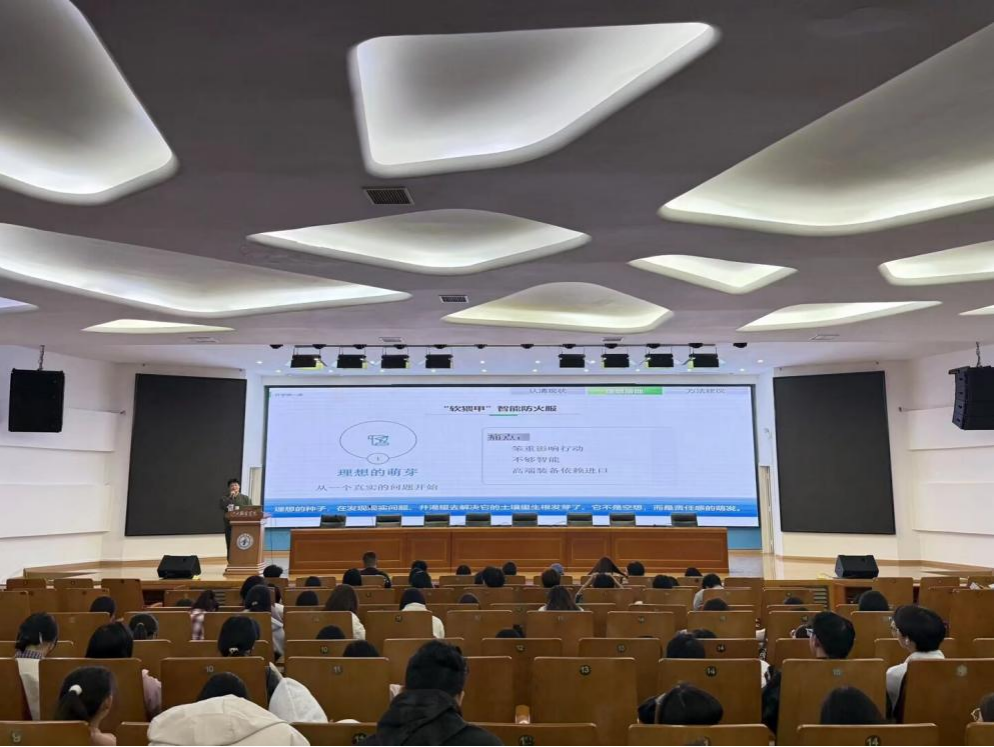 接着,徐小年点出了新生“被动学习”的困局,帮助新生打破对专业的局限认知,徐小年邀请了经验丰富的24级纺织本科1班的刘超同学进行项目分享,他介绍了“软猬甲”智能防火服项目从萌芽到落地的曲折过程,并分享了其成功后造就的理想价值,以亲身经历向新生寄语“让理想在大学里扎根,将个人理想与时代发展同频共振”。